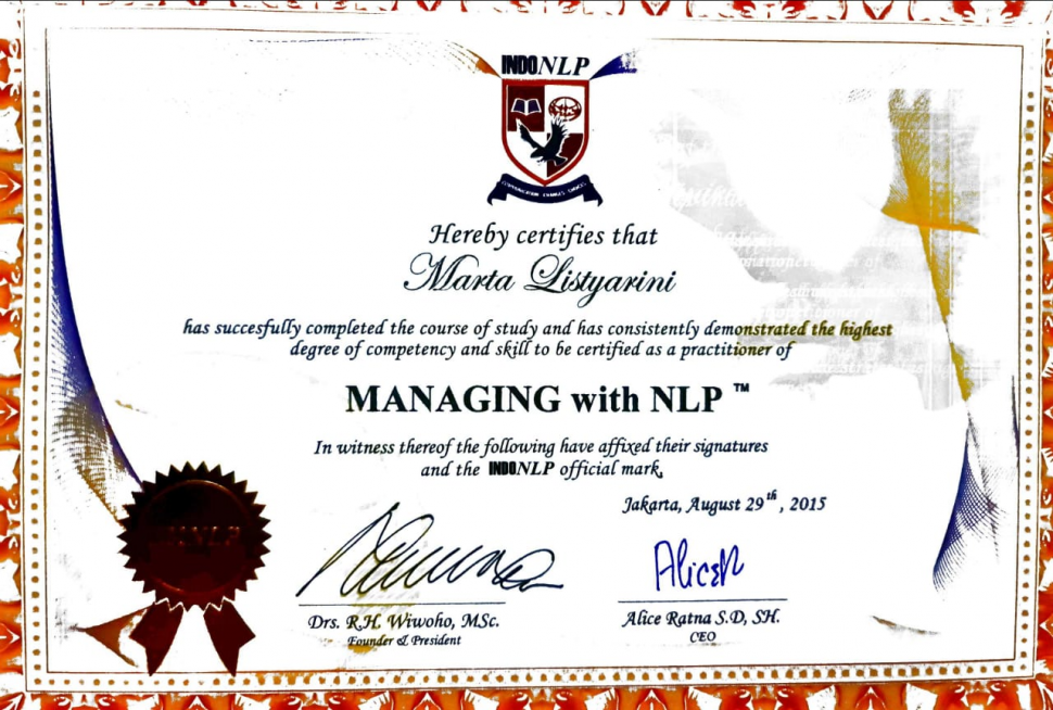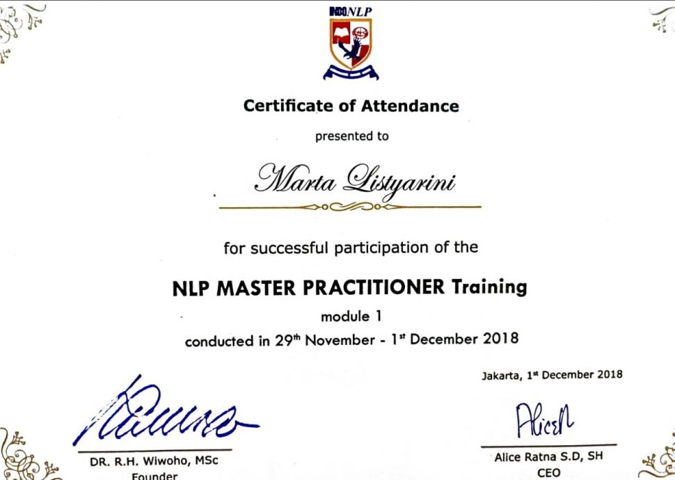 - Master practitioner NLP certified